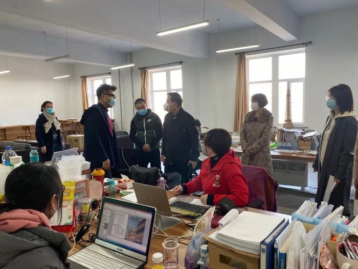 上午,校长刘和忠带领教务处、教学质量监督与评价处部分同志深入各教学单位,检查教师返岗情况、教学准备情况及课堂直播情况等。