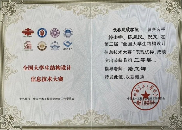 近日,第三届全国大学生结构设计信息技术大赛成绩公布,学校土木工程学院师生在大赛中获得二等奖1项、三等奖2项。