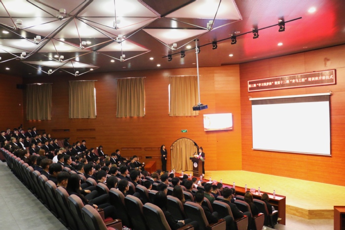 王浩强宣读学校第三期“学习筑梦班”暨第十二期“青马工程”培训班学员名单。