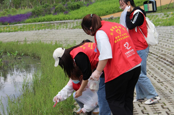 活动中,志愿者们通过“随手拍、随手捡、随手护”等形式,在永春河流域开展垃圾清理和环境美化等志愿服务活动。志愿者们不怕脏、不怕累,一手拿袋子,一手将遗留在河岸边的烟头、塑料包装袋、矿泉水瓶、废纸屑等垃圾捡入袋中。一个个身穿红马甲的身影在绿树映衬下,形成了永春河岸边一道道美丽的风景线。