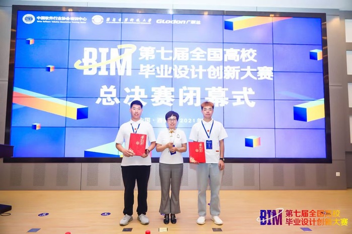6月21日,“第七届全国高校BIM毕业设计创新大赛全国总决赛”在西安落幕。学校由管理学院副院长韩丽红为指导教师,杨康民、贝跃两名同学为参赛队员组成的“长建德云社”代表队经过一整天的激烈的答辩、严格的评审以及严谨的评分,最终荣获本届大赛全国总决赛A模块特等奖获奖团队。