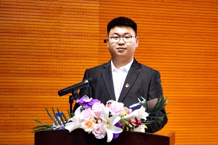 校学生会第二十一届执行主席姚淞瀚作学生会工作报告,回顾总结了过去一年来学生会在党史学习教育、参加社会实践、校园文化活动等方面取得的成绩与收获,分析了当前工作存在的不足,对今后学生会的工作出了规划与展望。
