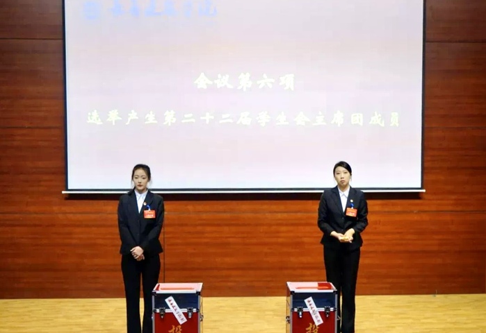在第二次全体会议上,大会审议通过了《长春建筑学院第二十一届学生会组织工作报告的决议》《长春建筑学院第二次学生代表大会提案工作报告》《长春建筑学生会章程》《学生会组织主席团及新一届学生委员会选举办法》;宣读了长春建筑学院第二十二届学生会主席团成员建议名单及新一届学生会委员会建议名单。全体学生代表现场投票选举产生第二十二届学生会主席团和学生会委员会成员名单。