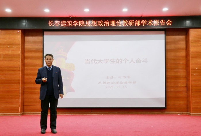为了培养大学生科学精神,浓郁学校学术氛围,激发青年学生刻苦学习热情,促进其健康成长,11月16日,学校思想政治理论教研部联合土木工程学院、管理学院在土木工程学院报告厅举办学术交流活动。思想政治理论教研部主任叶万军教授作了题为《当代大学生的个人奋斗》的讲座,学校科研处副处长刘玲及部分教师同350余名学生参加。学术活动由思想政治理论教研部副主任赵丽娜主持。