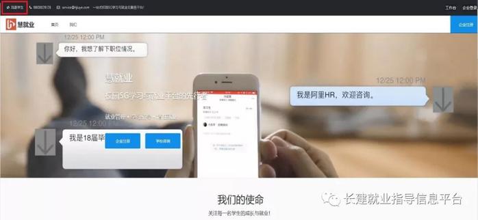 2.学生报名:微信搜索“长建就业指导信息平台”公众号,点击“视频就业-个人中心”进入学生就业小程序进行登录。详见下方学生操作指南(附件3)。