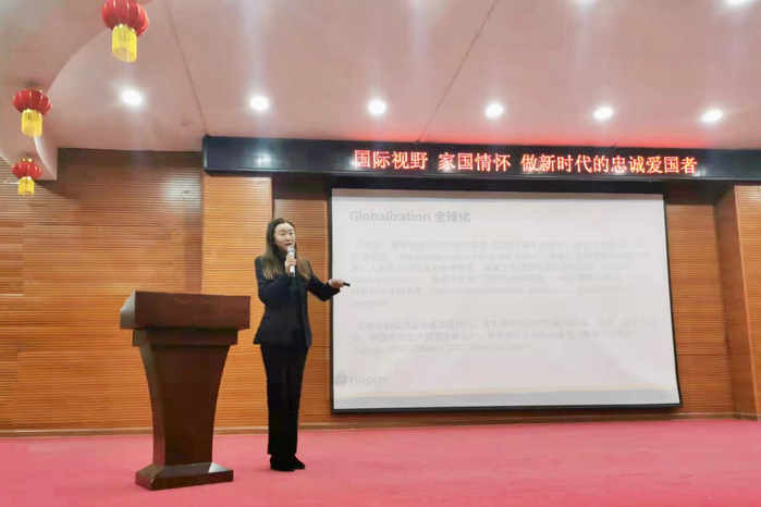 王玫首先对全球化和国际化作了概念性阐释,强调全球化与国际化两者之间的关系以及全球化对高等教育的影响和意义。通过2015年以来国家主导政策,分析了“一带一路”倡议背景下中国高等教育国际化的发展现状。王玫还讲解了当前中国高等教育国际化的实践是如何与构建人类命运共同体所强调的“和平、发展、互利、合作、共赢”理念高度契合的。此外,从“使命、元素、版图、格局”等几方面向同学们阐述了中国高等教育国际化的发展趋势,让同学们深刻认识到当前世界形势下培养国际视野的必要性。