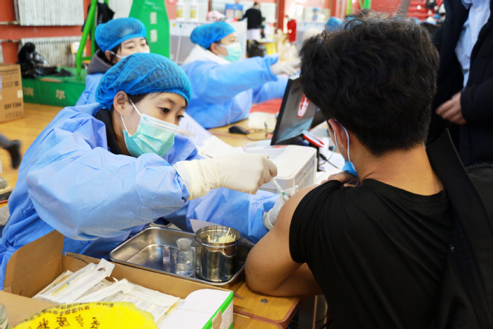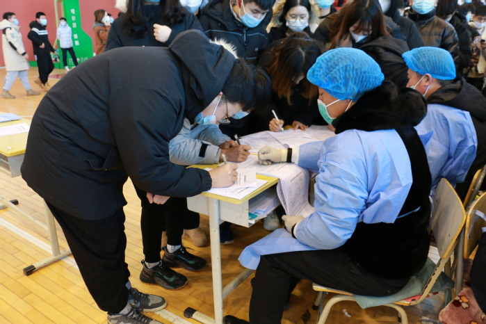 为响应国家疫苗接种“应接尽接、应快尽快”的号召,构筑更坚实的校园健康防线,建立新冠病毒免疫屏障,学校新冠肺炎疫情防控工作领导小组积极与长春市双阳区卫生防疫部门进行对接,由奢岭卫生服务中心50余名医护人员在学校奢岭校区建立临时接种点,于12月24日为学校师生有序接种新冠疫苗加强针。