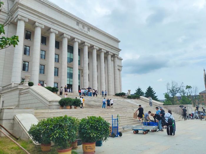 21日晚,剧中人物周楠写信时,就坐在长春建筑学院的图书馆内。周楠在信中描述了“留学”生活的美好,校园内的舒适,虽是剧情需要,但也正是长建校园的真实写照。欧式建筑风格的图书阅览区,干净整齐的摆满了各类书籍,尽显庄重大气。剧组对于此段剧情的选景,不仅是想“佐证”周楠信中对于校园的描述,更多的是想表现出浓郁的学习氛围,而长春建筑学院图书馆内场景与该剧情非常契合,但因为时间有限,这段剧情仅仅展示出了长建图书馆众多图书阅览区中的一隅。
