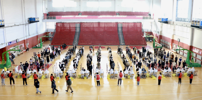 开展本次全员核酸检测工作前,学校疫情防控领导小组进行科学部署,周密安排,在体育馆内设置15条通道同时开展检测工作。同时,各单位部门协同联动,密切配合,提前做好人员统计,组织师生员工分时段、分批次到达检测现场。