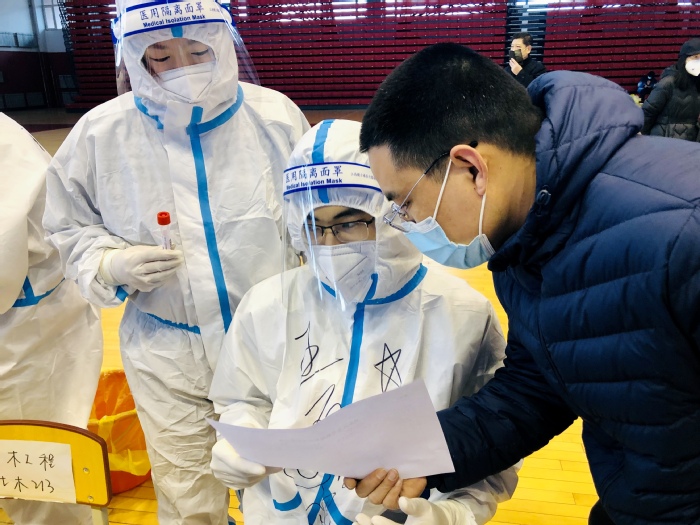 如此高效的核酸检测,离不开认真负责的学生志愿者们。来自7个学院的100余名志愿者不辞辛苦,积极参与,在一次次的核酸检测过程中,总结经验,提升效率。几人一组同时进行一米线的设置更快速?怎么录入信息更严谨?如何登记已采人员信息不影响采集速度?......志愿者们在行动中思考,在服务中探索,在学校领导的现场指导下,不断完善服务流程,减少不必要的环节,熟练做好每一步,让核酸检测工作一次更比一次快速,一次更比一次便捷。