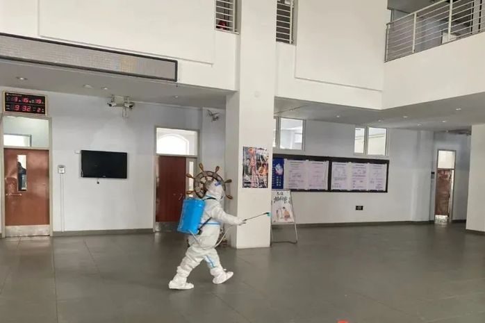 全面消毒,消除卫生死角。后勤处全力做好校园环境卫生清洁,生活垃圾清运前进行消毒处理,做到日产日清。加大对教室、楼道、快递收寄点等重点场所消毒、通风工作,保证公共场所卫生整洁,空气清新。