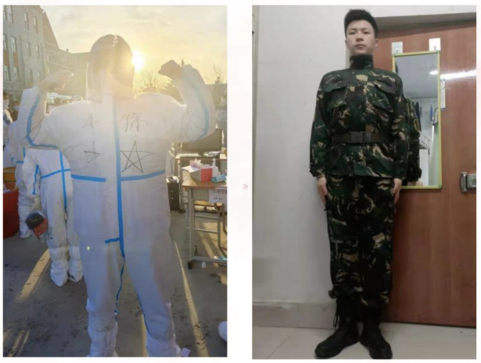 如今,疫情突袭,美丽的北国春城被疫情所侵扰。全市人民积极响应省委省政府号召,严格布控,一批批白衣战士夜以继日的奋斗在抗疫一线,舍小家为大家,默默的为守护这个城市在无私奉献着。与此同时,国旗护卫队的同学们也在学校抗疫行动中主动请缨,脱下训练服,穿上防护服,奔赴抗疫一线,用行动诠释责任和担当。