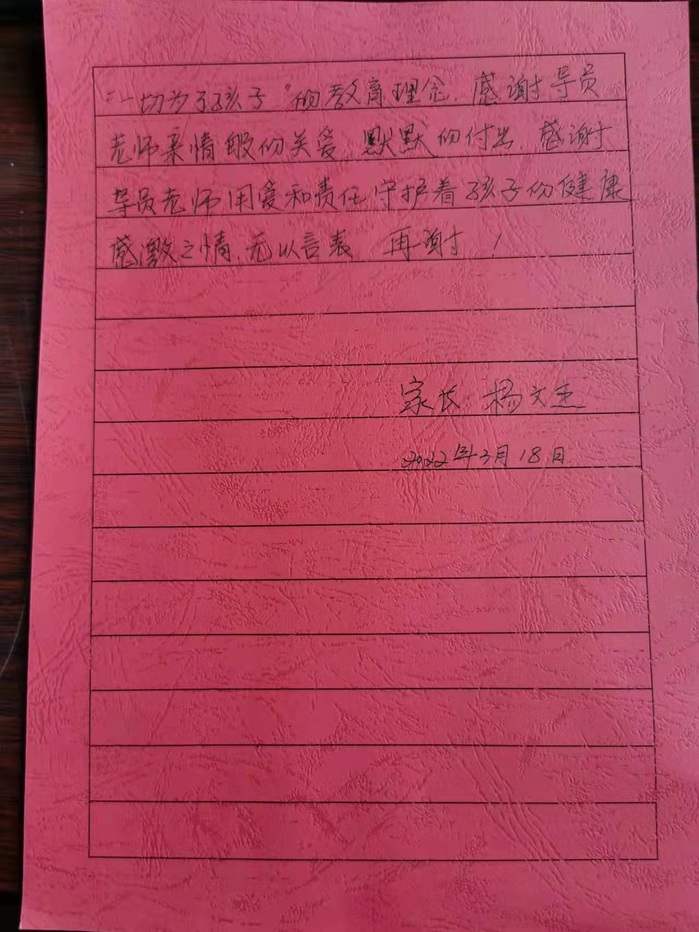 而在疫情发生以来,选择用感谢信来表达感激的,远不止杨女士一人。在此之前,管理学院学生邱悦的家长,也向学校发来了一封手写感谢信,这位家长用平实的话语,道出了一位家长从焦急无措到感恩感动的全过程。