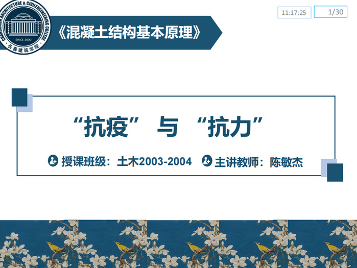 2022年3月21日下午,长春建筑学院土木工程学院结构教研室的陈敏杰老师在《混凝土结构基本原理》线上课程中,以《“抗疫”与“抗力”》为主题,通过逻辑关系分析,思政元素引入,工程案例分享,专业知识拓展,体现“两性一度”的一流水平,为土木2003-2004班同学呈现了精彩的一课。