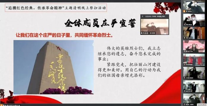 通过这次的线上祭扫活动,同学们体会到了中华百年崛起之路的艰难和革命前辈勇于抗争的革命情怀,更明确了作为青年大学生应向先辈学习,牢记先辈遗志,弘扬革命精神,传承红色经典,担当时代责任,走好新时代的长征路,投身于新时代祖国的伟大建设。