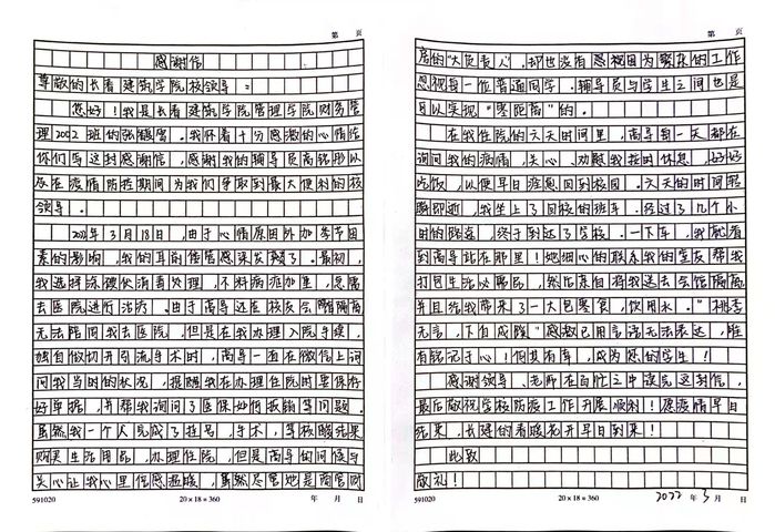 学生的一句句感谢的话语和那封书面的手写信,体现出的并不仅仅是学生对老师的信任与感谢,更是长春建筑学院对学生的责任和担当。