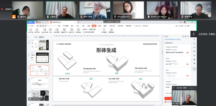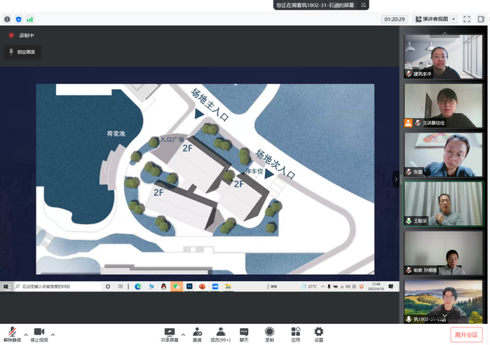此次评图对象为建筑学18级学生,评图作业以“创新性、理念性、问题性”为原则,采用指导教师推荐、学生自荐、学习通平台随机抽取三种方式选定,力求实现全体学生“代表性作业”的全覆盖。建筑学专业18级全体学生、部分19级、20级、21级学生参与“云评图”。