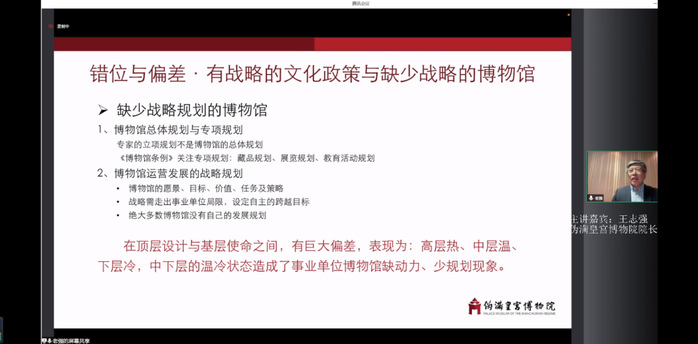 讲座最后,王志强馆长讲到中国博物馆需要理论创新,需要制度创新,需要有战略规划,需要着眼未来的人才培养。