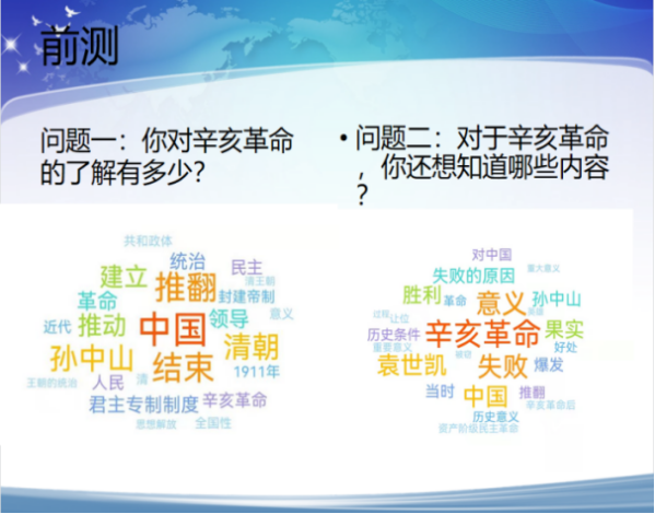 2.讲授新课。围绕课前学生主题讨论的内容展开本节课的学习。主要知识点包括:辛亥革命爆发的历史条件;资产阶级革命派的活动;三民主义的提出;关于革命与改良的辩论。
