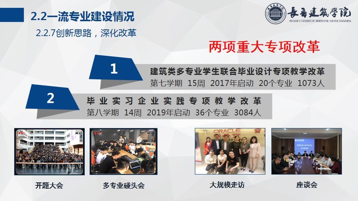 根据会议流程安排,首先,冯永从学校基本情况、专业建设情况、存在的问题和下一步工作计划四个方面做整体汇报。