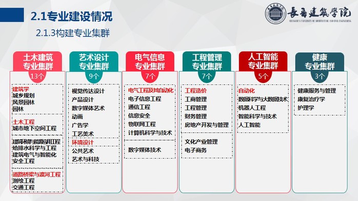 长期以来,学校高度重视专业建设工作,以“总体规划、分步实施、突出重点、形成特色”的建设要求,形成了“服务社会设专业、依托行业建专业、校企合作强专业”的专业建设思路。学校围绕国家和地方重点发展领域,深化专业供给侧改革,优化专业结构布局,构建了与产业链紧密对接的六大专业集群,专业建设成果丰硕。
