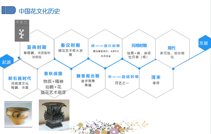 前期准备阶段:从讲解吉林省文化历史、花文化历史和吉林省花卉产业知识中,收集花与文化的知识,注意分析与选择花卉相关的文化内涵,提取文化元素。
