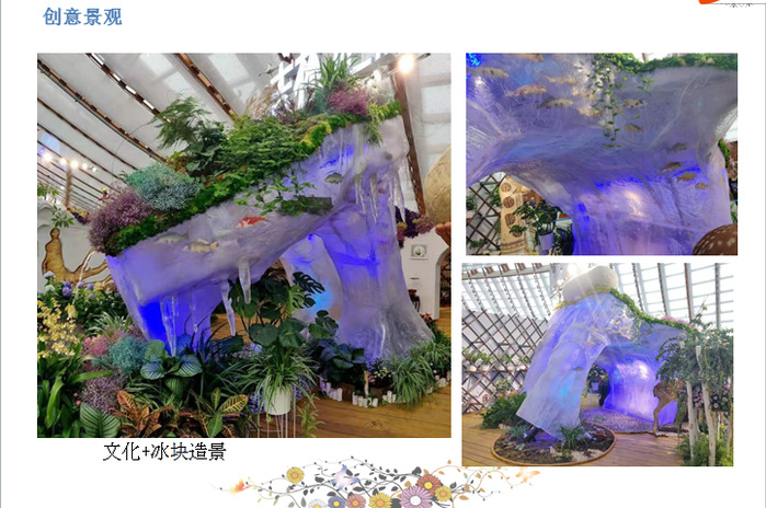 不咸春晓:提取了人参文化、工业文化、关东文化、长白山自然风光、野猪、野熊、人参、君子兰、靰鞡草等,通过艺术创作和植物造景,将文化和景观巧妙融合,让文化和景观都活了起来,勾勒出长白山雨后百花齐放,风光旖旎,池水潋滟,惜我韶华的仙山盛景画。