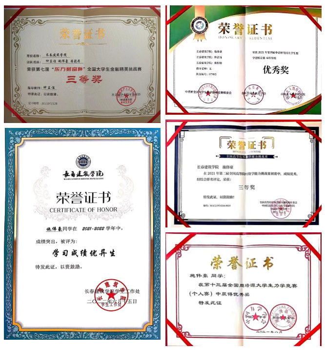 2021年8月周培源力学竞赛暨吉林赛区三等奖;