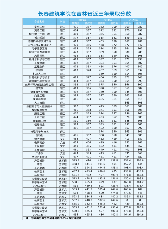 为更好的帮助各位考生填报志愿,下附长春建筑学院在吉林省近三年的录取分数一览表,以供参考。