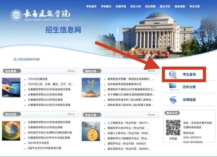 方式一:查询长春建筑学院招生信息网
