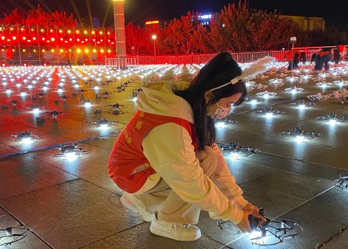 当人们尽情享受无人机表演带来的视觉盛宴时,一支由50人组成的“红马甲”队伍却在为一架架无人机有序腾空而起做着细致的准备工作,他们就是来自长春建筑学院极光青年志愿者协会的50名优秀同学。