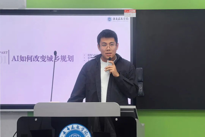 城乡规划专业吕国伟老师以“AI重塑城乡规划?规划师的‘破局之道’”为主题汇报,呼应吴志强院士“Human+AI是人类创造力、决策力与AI高效计算力结合的全新人机交互模式”的观点。他分享了两大实践案例:通过GIS与AI算法实现人口流动预测,为功能布局优化提供数据支撑。借助AI冲突检测系统识别规划消防通道隐患,弥补人工审查疏漏,既提升效率又强化方案合规性,凸显规划师核心价值与AI工具的协同效应。