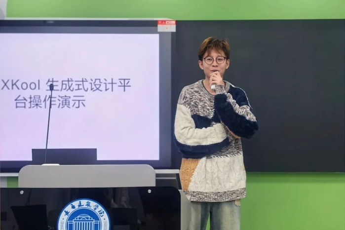 建筑学专业栗勇泽老师聚焦“方案生成与性能优化”两大核心环节,现场演示了小库XKool生成式设计平台的操作流程,通过实例展示AI如何将“采光通风”等原理参数转化为设计方案。同时分享了Honeybee+TensorFlow在节能策略迭代中的应用案例,展现AI技术在验证设计原理、提升方案科学性上的价值。