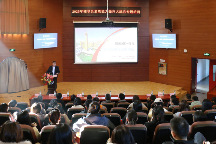 为落实立德树人根本任务,提升辅导员队伍服务学校“三个三”发展战略和园(校)区一体化发展战略的岗位胜任能力,助力学校高质量、高水平、高速度发展。11月11日上午,学校2025年辅导员素质能力提升大练兵专题培训在国际学术报告厅举行。学校学生服务管理中心各部门负责人,各学院党总支书记、副书记,以及全体辅导员参加了此次培训。培训由学生服务管理中心主任、学生工作处处长谯炜骅主持。