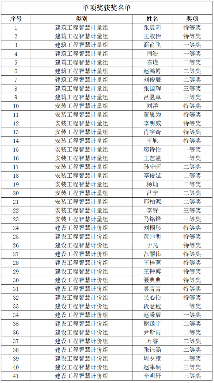 赛场之上,学校参赛学生凭借扎实的专业功底、出色的创新思维和默契的团队协作,一举斩获个人单项赛特等奖16项、一等奖6项、二等奖13项、三等奖6项;团队赛特等奖3项、一等奖3项、二等奖3项、三等奖5项。这一成绩充分展现了学校学生专业基础扎实、勇于拼搏进取的青春风采,生动体现了学校教学成效与人才培养实力。