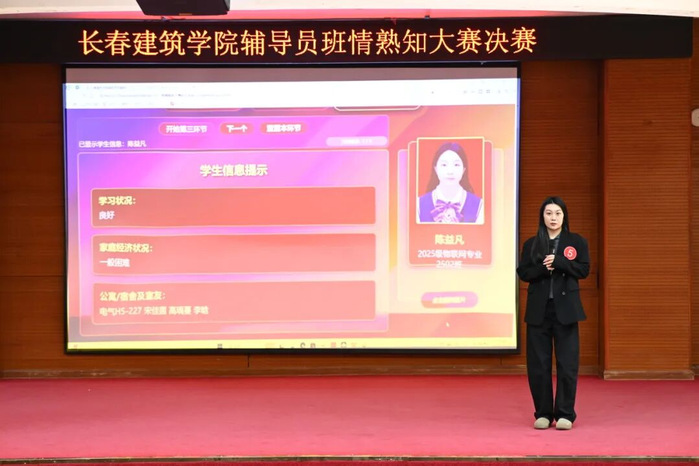 12月17日,长春建筑学院辅导员班情熟知大赛在土木工程学院报告厅成功举行,标志着学校以“核心素养赋能 新质育人领航”为主题的2025年辅导员素质能力提升大练兵系列活动圆满结束。