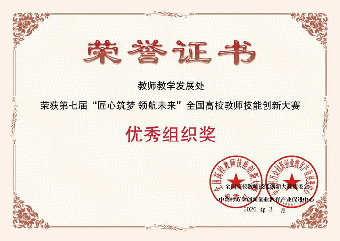 近日,第七届“匠心筑梦 领航未来”全国高校教师技能创新大赛获奖结果正式揭晓。学校在本届大赛中共荣获14项国家级奖项,其中一等奖3项、二等奖4项、三等奖7项,一等奖获奖数量在省内参赛院校中位居首位,学校教师教学发展处荣获优秀组织奖。