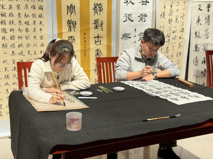 本届传统文化赛事在传统软笔、硬笔书法组别基础上,首次增设了国画组别,让书法与国画两大国粹艺术在校园同台绽放、交相辉映。软笔书法、硬笔书法、国画三大组别同步开赛,既优化了活动流程,也为参赛者营造了从容舒展、专注投入的创作氛围。活动现场专设文房四宝展示区与优秀作品赏析区,吸引众多师生驻足观摩大家在笔墨丹青间沉浸式感受中华优秀传统文化的深厚底蕴与独特魅力。